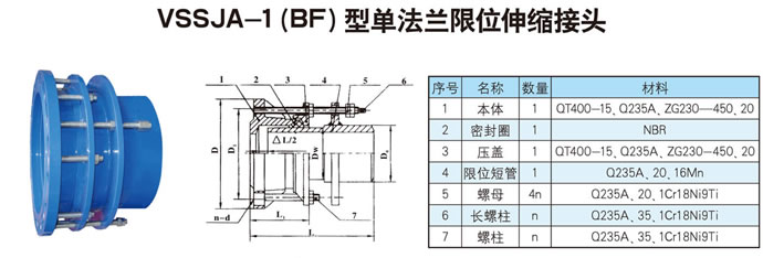 單法蘭限位伸縮接頭:該產(chǎn)品適用于邊與法蘭連接,邊與管道焊接,安裝時調(diào)整產(chǎn)品兩端與管道或法蘭的安裝長度,對角均勻擰緊壓蓋螺栓,再調(diào)整好限位螺母,這樣就能讓管道在伸縮量范圍內(nèi)可以自由伸縮,鎖定伸縮量,管道的安全運行。